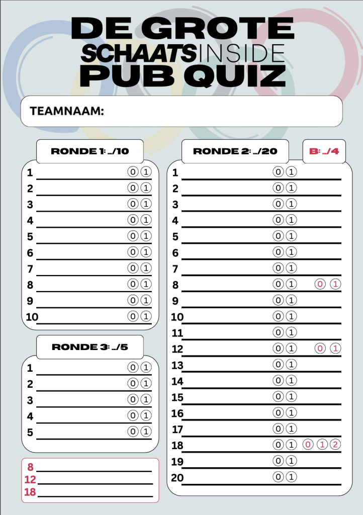 Duik met ons in de wondere wereld van ijzers, records en Olympische dromen met De Grote Schaats Inside Quiz! Speciaal samengesteld door de kenners van Schaats Inside en perfect om alvast in de Olympische sferen te komen voor Milaan-Cortina 2026. Of je nu een doorgewinterde schaatsfanaat bent, een quiz zoekt voor in de kroeg of gewoon van een leuke uitdaging houdt, deze quiz test jouw kennis op het scherpst van de snede!